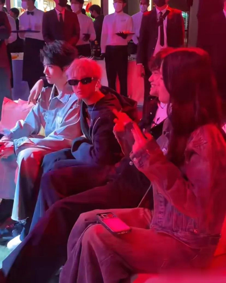 除了他们三位,这次一起参加活动的还有邵兵的儿子邵子恒,他上身品牌的一套牛仔套装,在人群中也是帅的突出啊。