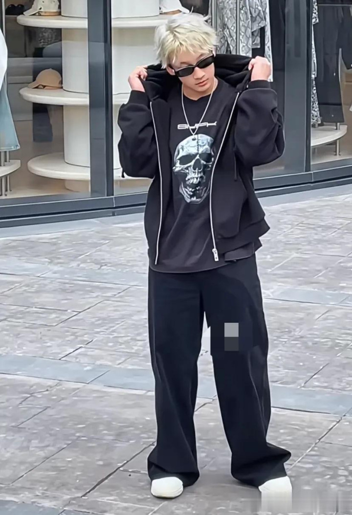 他一头金发戴着墨镜,穿着黑色运动外套,搭配工装裤,人瘦了果然穿啥都好看,而且虽然爸妈不高,但轩轩身高还是蛮高的,和Joe差不多,摆起姿势来也是有模有样的,真的是长大了。